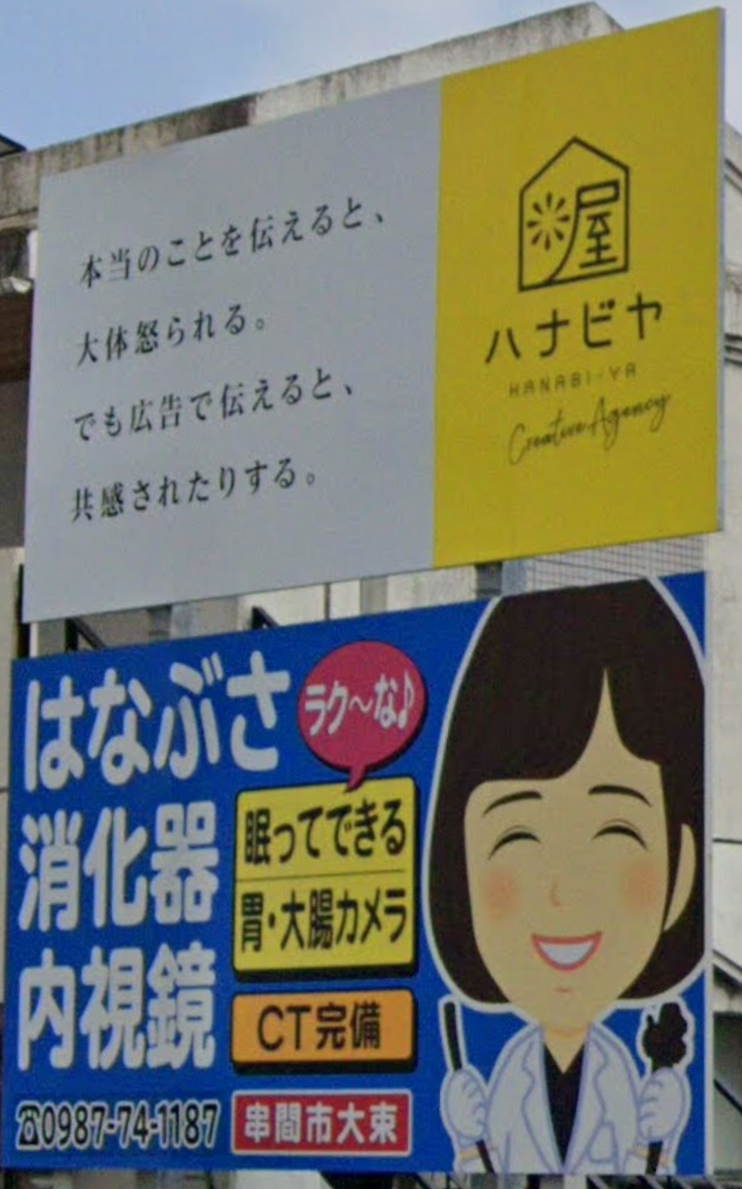 上の広告の「なんか上手いこと言ってやった」感(ただし中身空っぽ)の看板はどうでもいいとして下の看板よ