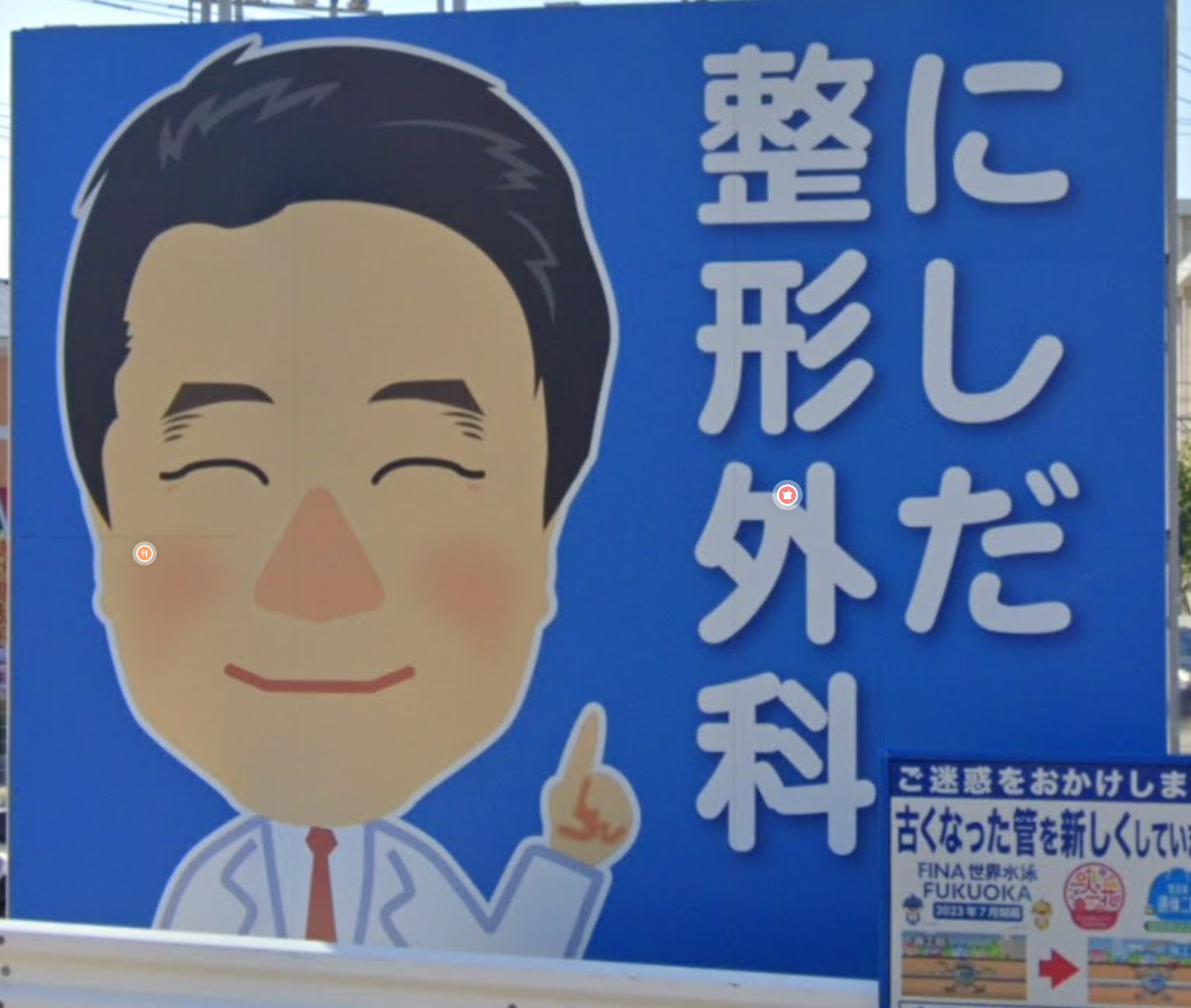 金を払って 意味のない情報しか載っていない その上意味のない似顔絵が描かれている 看板を設置するというその思考が理解できない