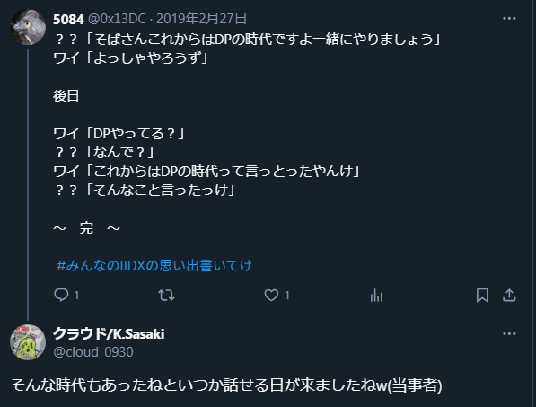 当時DDRランカーのクラウドから誘われたんですが、上記にもある通り本人は「そんなこと言ったっけ」で俺が膝から崩れ落ちたという。